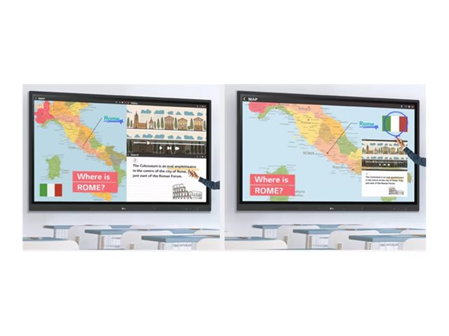 Produktbeskrivning LG CreateBoard 65TR3DK-B TR3DK Series - 65" LED-bakgrundsbelyst LCD-skärm - 4K - för utbildning/företag Typ av produkt LED-bakgrundsbelyst, platt LCD-skärm med pekskärm (multitouch) Diagonalklass 65" Kommersiell användning Ja - utbildning/företag Färg Svart Plattform Android Upplösning 3840 x 2160 Visningsformat 4K UHD (2160p) Rampris och förhöjningsteknologi 60 Hz Refresh Rate Videogränssnitt HDMI, USB-C HDMI-portskvantitet 3 portar Anknytningsbarhet Wi-Fi (valfritt), LAN, Bluetooth PC-gränssnitt VGA (HD-15) Teknik IPS LCD-teknik för bakgrundsbelysning Direct LED Bildkvot 16:9 TV-tuner Ingen mottagare Kommersiella funktioner Lock Mode, Secure Mode, LG ConnectedCare, startlogga, LG CreateBoard Share, Smart Viewing, automatisk borttagning av filer, LG ConnectedCare DMS Bildförbättringar 72 % färgomfång NTSC Högtalarsystem 2 högtalare Lagringskapacitet 32 GB USB Ja Inkluderade tillbehör Fjärrkontroll, 2 pennor Spänning AC 100-240 V (50/60 Hz) Energiförbrukning vid drift 220 Watt Strömkonsumtionsställ med 0.5 Watt Dimensioner (BxDxH) - utan ställ 148.84 cm x 8.72 cm x 89.66 cm Vikt 35 kg - Nedladdningsbara filer
