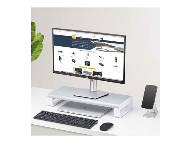 Produktbeskrivning StarTech.com Ergonomic Monitor Riser Stand, 33lb Max, Fixed height 3.5in - monitorställ - TAA-kompatibel Produkttyp Monitorställ Placering/montering På bord Förpackningens innehåll 2 stigarstöd, 4 skruvar, 4 gummifötter Färg Vit och silver Produktmaterial Stål, plast Dimensioner (BxDxH) 54.46 cm x 22 cm x 9.05 cm Vikt 2 kg TAA-kompatibel Ja Tillverkarens garanti 5 års garanti - Tillbehör