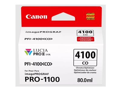 Produktbeskrivning Canon PFI-4100 CO - kromoptimerare - original - bläcktank Typ av produkt Bläcktank Utskriftsteknik Bläckstråle Utskriftsfärg Kromoptimerare Kapacitet 80 ml Egenskaper för tonerkassett Canon LUCIA PRO II Förpackningstyp Hängande låda Kompatibel med imagePROGRAF PRO-1100 - Nedladdningsbara filer