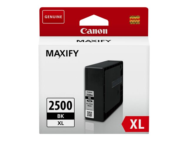 Produktbeskrivning Canon PGI-2500XL BK - Lång livslängd - svart - original - bläcktank Typ av produkt Bläcktank Utskriftsteknik Bläckstråle Utskriftsfärg Svart (pigmenterad) Kapacitet 70.9 ml Kassettens kapacitet Lång livslängd Egenskaper för tonerkassett Dual Resistant High Density (DRHD) Avkastning Upp till 2500 sidor Förpackningstyp Förpackning med stöldmärkning Kompatibel med MAXIFY iB4050, iB4150, MB5050, MB5150, MB5155, MB5350, MB5450, MB5455 - Nedladdningsbara filer