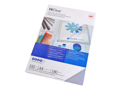 Produktbeskrivning GBC HiClear - 100 stk - PVC-bindningsskydd Typ av produkt PVC-bindningsskydd Format A4 (210 x 297 mm) Tjocklek på medier 200 mikrometer Mediefärger Superklar Medföljande antal 100 stk Kompatibel med IBICO CombBind ibiMaster 250e - Nedladdningsbara filer
