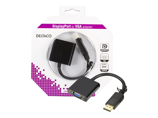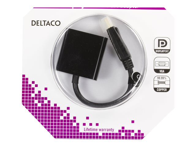 Produktbeskrivning DELTACO DP-VGA7-K - videokonverterare Typ av enhet Videokonverterare Gränssnitt 1 x DisplayPort-ingång - 20-stifts DisplayPort