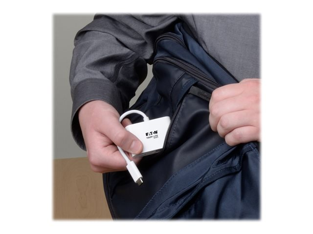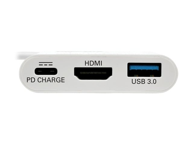 Produktbeskrivning Eaton Tripp Lite Series USB C to HDMI Multiport Video Adapter Converter 1080p w/ USB-A Hub & USB-C PD Charging, Thunderbolt 3 CompatibleUSB Type C to HDMI, USB-C to HDMI, USB Type-C to HDMI - extern videoadapter - vit Typ av enhet Extern videoadapter Busstyp USB-C 3.1 Max upplösning 1920 x 1080 Gränssnittsdetaljer HDMI