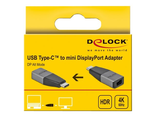 Produktbeskrivning Delock - videokort - USB-C till Mini DisplayPort Typ Videokort Egenskaper 4K60Hz stöd, stödjer DisplayPort alternativläges, HDR-stöd, HDR10-stöd, metallhus, Chipset Chrontel CH7213C Kontaktdon 24 pin USB-C - hane (ingång) Kontakt (andra änden) Mini DisplayPort - hona (utgång) Standarder som följs USB 3.2 Gen 1 / DisplayPort 1.2 Färg Grå Förpackningstyp Detaljhandel - Nedladdningsbara filer