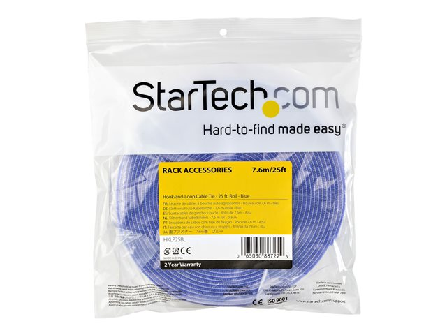 Produktbeskrivning StarTech.com 25ft Hook and Loop Roll, Cut-to-Size Reusable Cable Ties, Bulk Industrial Wire Fastener Tape / Adjustable Fabric Wraps Blue / Resuable Self Gripping Cable Management Straps - Adjustable Loop Ties (HKLP25BL) - kardborrefäste Produkttyp Kardborrefäste Dimensioner (BxDxH) 1.9 cm 0.238 cm Längd 7.62 m Vikt 135 g Färg Blå Tillverkarens garanti 2 års garanti Designat för P/N: CABSHF2POST2, HKLP25, HKLP25GN, HKLP25RD, HKLP25YW - Tillbehör