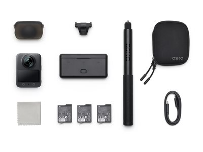 Produktbeskrivning DJI Osmo 360 - Adventure Combo - aktionkamera Typ av produkt Aktionkamera - 8K Aktionskameratyp Monterbar Minneskortuttag microSD-kort Intern lagring 128 GB blixt Trådlöst gränssnitt Bluetooth, Wi-Fi Sensorupplösning 2 x Effektiv sensorupplösning Foto: 120 MP Objektivsystem 2 x vidvinkelobjektiv f/1.9 Fokuseringsjustering Fokuseringsfri Bildstabiliserare Elektronisk (RockSteady 3.0, HorizonBalancing, HorizonSteady) Display - 2" Batterier som stöds Litiumjonbatteri - 1950 mAh (inkluderad) Gränssnitt USB 3.1 Dimensioner (BxDxH) 6.1 cm x 3.6 cm x 8.14 cm Vikt 183.5 g - Nedladdningsbara filer