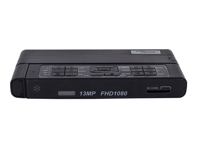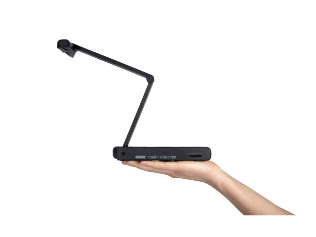 Produktbeskrivning Optoma DC455 - digital dokumentkamera Typ av enhet Digital dokumentkamera Ljud Ja: inbyggd högtalare, inbyggd mikrofon Dimensioner (BxDxH) 19 cm x 2.5 cm x 8 cm Vikt 585 g Anslutningsteknik Kabelanslutning Kamera Färg Max upplösning 1920 x 1080 Bildhastighet (max) 30 frames per second Videoformat 1080p Bildsensortyp 13.000.000 pixlar Gränssnitt USB 2.0, VGA, HDMI Medföljande kablar 1 - HDMI-kabel - extern