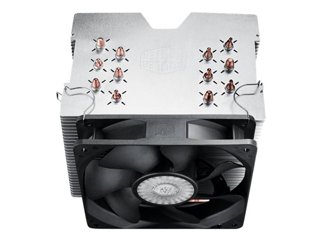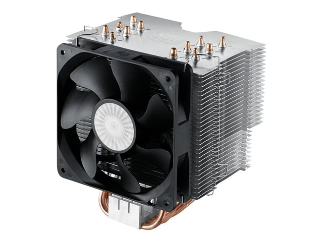 Produktbeskrivning Cooler Master Hyper 612 Ver. 2 - processorkylare Produkttyp Processorkylare Kompatibilitet LGA775 Socket, LGA1156 Socket, Socket AM2, Socket AM2+, LGA1366 Socket, Socket AM3, LGA1155 Socket, Socket AM3+, LGA2011 Socket, Socket FM1, Socket FM2, LGA1150 Socket, Socket FM2+, LGA2011-3 Socket Kylarmaterial Aluminium med kopparbas Fläktdiameter 120 mm Fläkthöjd 25 mm Fläktlager Rifle-lager Rotationshastighet 800-1 300 vpm Luftflöde 26,6 - 44,2 cfm Bullernivå 11 - 20 dBA Starkströmskontakt 4-stifts fläktkontakt Märkspänning 12 V Egenskaper Stöd för PVM (Pulse-width modulation), 6 kopparvärmerör (6 mm), CDC-teknik (Continuous Direct Contact), X-Vent-teknik Dimensioner (BxDxH) 12.89 cm x 15.01 cm x 16.04 cm Tillverkarens garanti 2 års garanti - Nedladdningsbara filer