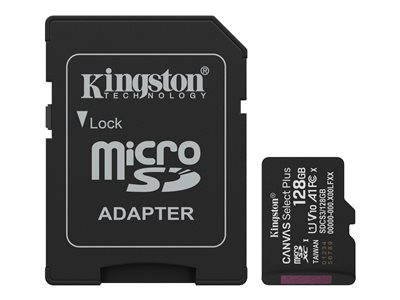 Produktbeskrivning Kingston Canvas Select Plus - flash-minneskort - 128 GB - mikroSDXC UHS-I Produkttyp Flash-minneskort Formfaktor mikroSDXC UHS-I minneskort Minneskapacitet 128 GB Hastighet A1 / Video Class V10 / UHS-I U1 / Class10 Minnesadapter som medföljer microSDXC till SD-adapter Tillverkarens garanti Begränsad livstidsgaranti - Nedladdningsbara filer