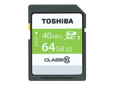 Produktbeskrivning Toshiba Professional - flash-minneskort - 64 GB - SDXC UHS-I Produkttyp Flash-minneskort Formfaktor SDXC UHS-I minneskort Minneskapacitet 64 GB Hastighet UHS Class 1 / Class10 Tillverkarens garanti 5 års garanti - Nedladdningsbara filer