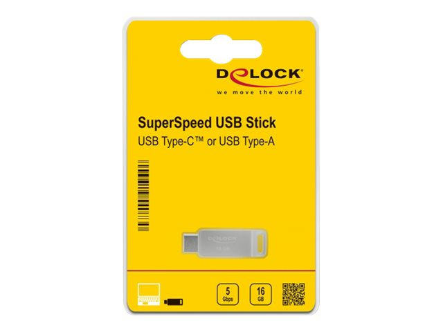 Produktbeskrivning Delock - USB flash-enhet - 32 GB Produkttyp USB flash-enhet Gränssnittstyp USB 3.2 Gen 1 / USB-C Minneskapacitet 32 GB Operativsystem erfordras Microsoft Windows 7 / 8.1 / 10 (32/64 bits), Linux Kernel 3.3 eller senare, Apple macOS Mojave 10.14.3 eller högre, Google Chrome OS 72 eller senare - Nedladdningsbara filer