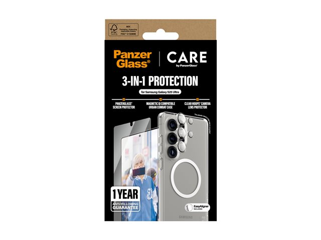 Produktbeskrivning CARE by PanzerGlass Urban Combat - baksidesskydd för mobiltelefon Typ av produkt Baksidesskydd för mobiltelefon - MagSafe-kompatibilitet Kombinerad med Skärm- och objektivskydd Material 100 % återvunnet polykarbonat, 100 % återvunnet termoplastpolyuretan (TPU) Färg Transparent, vit Återvunnet produktinnehåll 100 % - tillverkad av återvunnen plast Tillverkarens garanti 1 års garanti Designat för Samsung Galaxy S25 Ultra - Tillbehör