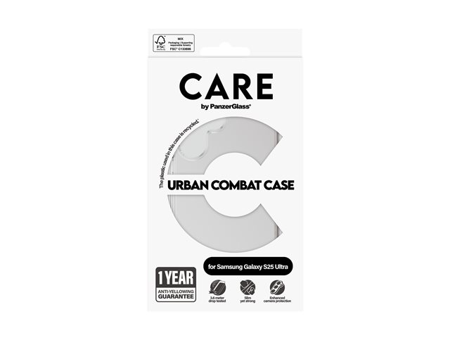 Produktbeskrivning CARE by PanzerGlass Urban Combat - baksidesskydd för mobiltelefon Typ av produkt Baksidesskydd för mobiltelefon Dimensioner (BxDxH) 8.4 cm x 1.3 cm x 16.8 cm Vikt 44 g Material Polykarbonat, termoplastisk polyuretan (TPU) Återvunnet produktinnehåll 100 % - tillverkat av återvunnet polykarbonat/termoplastpolyuretan (TPU) Designat för Samsung Galaxy S25 Ultra - Tillbehör