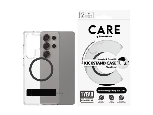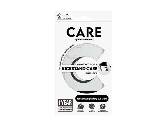 Produktbeskrivning CARE by PanzerGlass - baksidesskydd för mobiltelefon Typ av produkt Baksidesskydd för mobiltelefon Material Termoplastisk polyuretan (TPU), polykarbonat, aluminiumlegering Färg Transparent Återvunnet produktinnehåll 100 % - tillverkat av återvunnet polykarbonat/termoplastpolyuretan (TPU) Designat för Samsung Galaxy S25 Ultra - Tillbehör