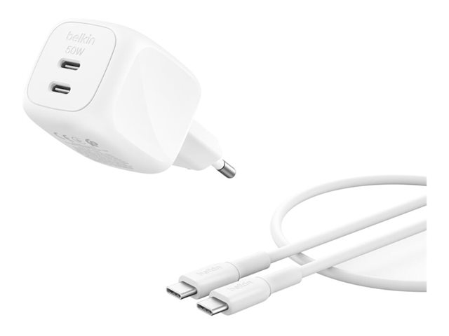 GaN - 2 x USB-C - 50 Watt - med USB-C-kabel (1m)