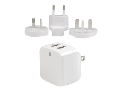 Produktbeskrivning StarTech.com USB-väggladdare med två portar - internationell resa - 17 W/3,4 A - vit strömadapter - USB - 17 Watt Typ av produkt Strömadapter Utformad för Surfplatta, mobiltelefon Vikt 132 g Färg Vit Typ av utkontakt Total 2: USB Nätspänning AC 100-240 V Tillförd spänning 5 V Max elektrisk ström 3.4 A Effekt 17 Watt Strömenhetsinformation - 4-stifts USB typ A - 1 A