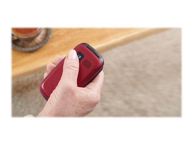 Produktbeskrivning Panasonic KX-TU446 - vinröd - funktionstelefon - GSM Typ av produkt Funktionstelefon Bildskärm LCD-skärm - 320 x 240 pixlar - 2.4" - TFT Egenskaper FM-radio, LED-ficklampa Serviceleverantör Inte specificerad Formfaktor Viktelefon Simkort Ett SIM Trådlöst gränssnitt Bluetooth Meddelandetjänster SMS Kontakter Micro-USB Taltid Upp till 300 minuter Passningstid Upp till 600 timmar Skydd Stötsäker Färg Vinröd Dimensioner (BxDxH) 53 mm x 23 mm x 106 mm Vikt 110 g - Nedladdningsbara filer