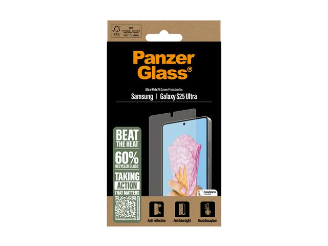 Produktbeskrivning PanzerGlass - skärmskydd för mobiltelefon - ultra-bred passform, allt-i-ett Typ av produkt Skärmskydd - glas Avsedd för Mobiltelefon Skydd Reptålig, vattenavstötande, droppskydd, stötsäkert, värmeavledning, motstår fingeravtryck, oljeavvisande, antiblåljus Beläggning Oleofob, antireflex Förpacknings innehåll Skärmskydd, EasyAligner Produktmaterial PET (Polyethylene Terephthalate), allerglas (mikrofraktur2023) Dimensioner (BxDxH) 7.405 cm Längd 15.922 cm Grovlek 0.28 mm Vikt 16 g Ramfärg Svart Designat för Samsung Galaxy S25 Ultra - Tillbehör