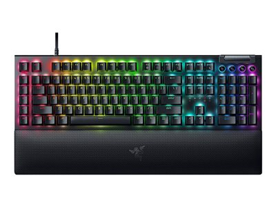 Produktbeskrivning Razer BlackWidow V4 - tangentbord - QWERTZ - tysk Inmatningsenhet Typ av enhet Tangentbord Bakgrundsbelyst RGB Chroma Gränssnitt USB-C Anslutningsteknik Kabelansluten Lokalisering och layout QWERTZ tysk Antal snabbtangenter 11 Snabbtangentsfunktion Scrollning, makroknappar, mediereglage Numeriskt tangentbord Ja Gaming Ja Nyckellåstyp Razer Yellow Tillverkarens garanti 2 års garanti - Nedladdningsbara filer