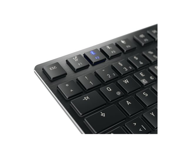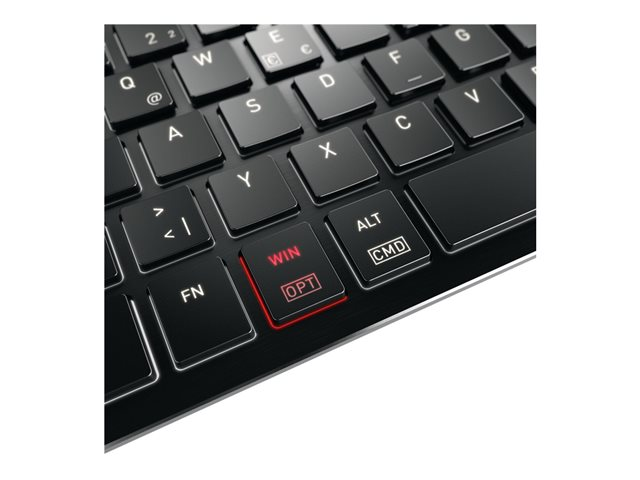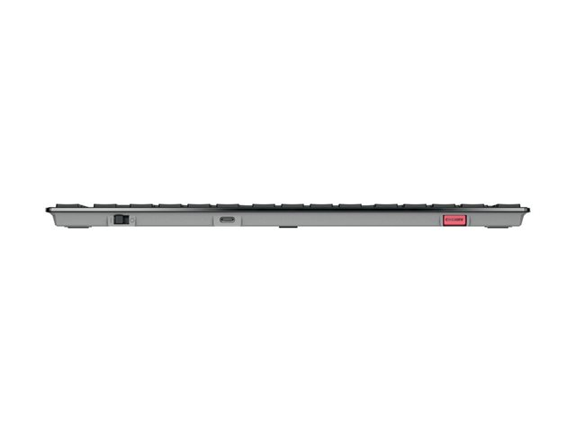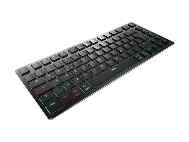 Produktbeskrivning CHERRY KW X ULP 2.0 MINI - tangentbord (påse) - 75% compact - QWERTZ - tysk - svart Inmatningsenhet Typ av enhet Tangentbord Bakgrundsbelyst Vit Gränssnitt 2.4 GHz, Bluetooth 5.2, USB Trådlös mottagare Nano trådlös USB-mottagare Anslutningsteknik Kabelansluten, trådlös Lokalisering och layout QWERTZ tysk Snabbtangentsfunktion N-tangentsrollover Nyckellåstyp CHERRY MX ultralåg profil Färg Svart Dimensioner (BxDxH) 31.94 cm x 13.22 cm x 1.563 cm Vikt 570 g Tillverkarens garanti 3 års garanti - Nedladdningsbara filer