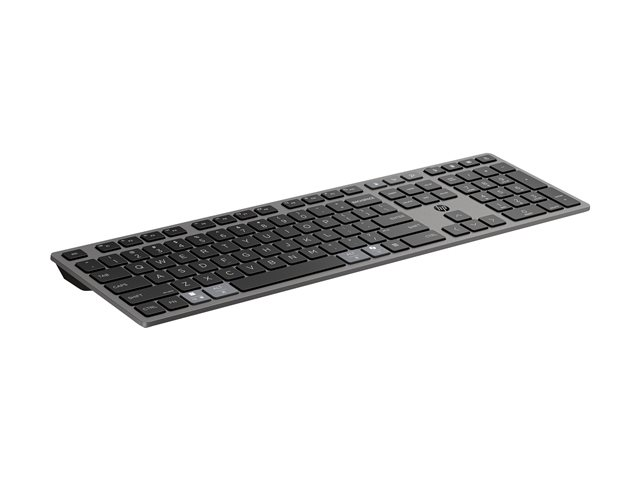 Produktbeskrivning HP 725 - tangentbord - flera enheter, uppladdningsbar, drivs av SuperCapacitor full size - QWERTY - internationell engelska - svart kvällning Inmatningsenhet Typ av enhet Tangentbord Gränssnitt 2.4 GHz, Bluetooth Trådlös mottagare Trådlös USB-mottagare Anslutningsteknik Trådlös Lokalisering och layout QWERTY internationell engelska Snabbtangentsfunktion Diktering, Copilot, PC-lås, kalkylator, Caps Lock Skydd Spillbeständig Numeriskt tangentbord Ja Färg Svart kvällning Tillverkarens garanti 1 års garanti - Nedladdningsbara filer