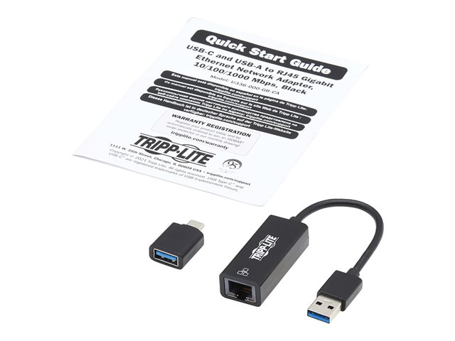 Eaton Tripp Lite Series USB-C, USB-A to RJ45 Gigabit Ethernet Network Adapter (2xM/F), USB 3.2 Gen 1, Black