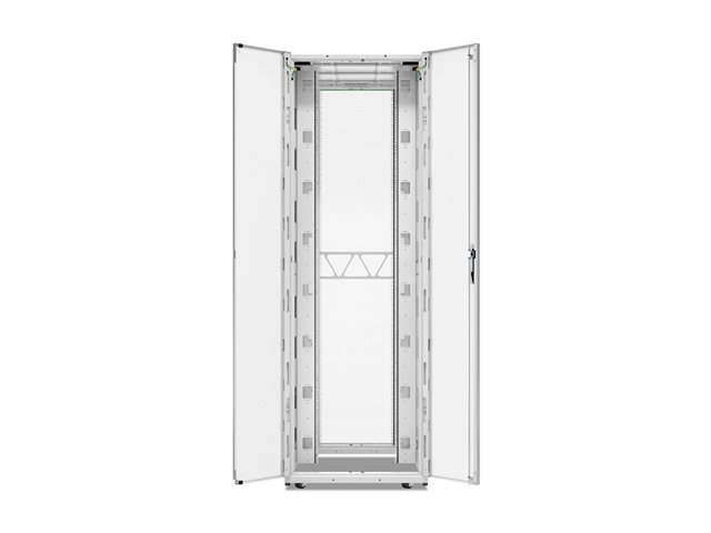 Produktbeskrivning APC NetShelter SX Gen 2 - rack - 2436 H x 800 B x 1200 D mm, med sidor - 52U - TAA-kompatibel Produkttyp Rack - 2436 H x 800 B x 1200 D mm, med sidor Racktyp Skåp Placering/montering Golvstående Förpackningens innehåll Sidopaneler, tangenter, byggnadsmaskinvara, nivelleringsfötter, monteringsmaskinvara, dörrar med samma nyckel, förinstallerade hjul, räfflad sidopanel Färg Vit Stativstorlek 19" Höjd (U-format) 52U Produktmaterial Stål Dimensioner (BxDxH) 80 cm x 120 cm x 243.6 cm Vikt 205.59 kg Egenskaper Integrerad kabelhantering, borttagbara sidopaneler, perforerad dörr (80%), 270° dörröppning, låsbara dörrar, 2 mm EIA-monteringsskenor TAA-kompatibel Ja Tillverkarens garanti 5 års garanti - Tillbehör