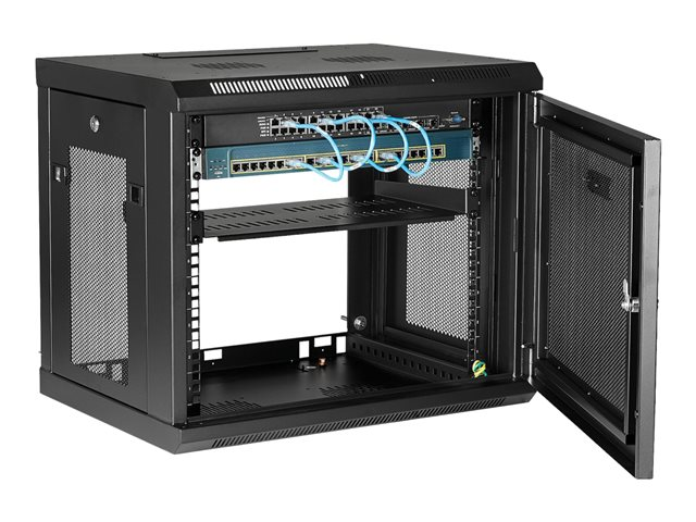 Produktbeskrivning StarTech.com 9U väggmonterat serverrackskåp - 15 tum djup - rackmonteringsskåp - 9U Produkttyp Rackmonteringsskåp Placering/montering Väggmontering Förpackningens innehåll 2 sidopaneltangenter, 36 skruvar (12 - 24), 36 hylsmuttrar, 2 dörrnycklar, rulle med kardborreband Färg Svart Höjd (U-format) 9U Produktmaterial Stål Dimensioner (BxDxH) 60 cm x 45 cm x 50.4 cm Vikt 17.5 kg Egenskaper Tangentlås, främre dörr med nät, med gångjärn, låsbar främre dörr, inställningsbart djup Tillverkarens garanti 5 års garanti - Tillbehör