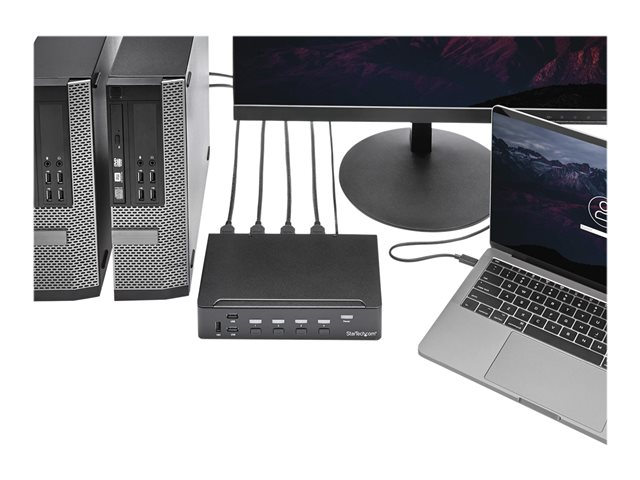 Produktbeskrivning StarTech.com HDMI KVM-switch med 4 portar - USB 3.0 - 1080p - omkopplare för tangentbord/video/mus/USB - 4 portar - rackmonterbar Typ av enhet Omkopplare för tangentbord/video/mus/USB - 4 portar Modell Rackmonterbar Undertyp KVM Portar 4 x KVM/ljud/USB + 3 x SuperSpeed USB Antal KVM-användare 1 lokal användare Funktioner Inbyggd 3 portars SuperSpeed USB 3.0-hubb Strömtillförsel Växelström 120/230 V/likström 9 - 12 V Lokalisering Australien, Nordamerika, Storbritannien, Europa Tillverkarens garanti 2 års garanti Designat för P/N: SV431RACK - Tillbehör