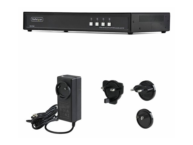 Produktbeskrivning StarTech.com - omkopplare för tangentbord/video/mus - säker - 4 portar - TAA-kompatibel Typ av enhet Omkopplare för tangentbord/video/mus - 4 portar Undertyp KVM Portar 4 x KVM port(s) Antal KVM-användare 1 lokal användare Funktioner Metallhölje, anti-manipuleringsskydd, tryckknapp Strömtillförsel DC 12 V Dimensioner (BxDxH) 17 cm x 32 cm x 4.5 cm TAA-kompatibel Ja - Tillbehör