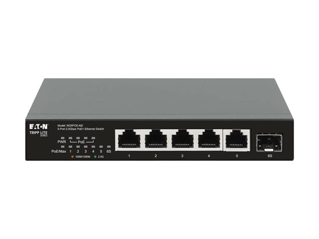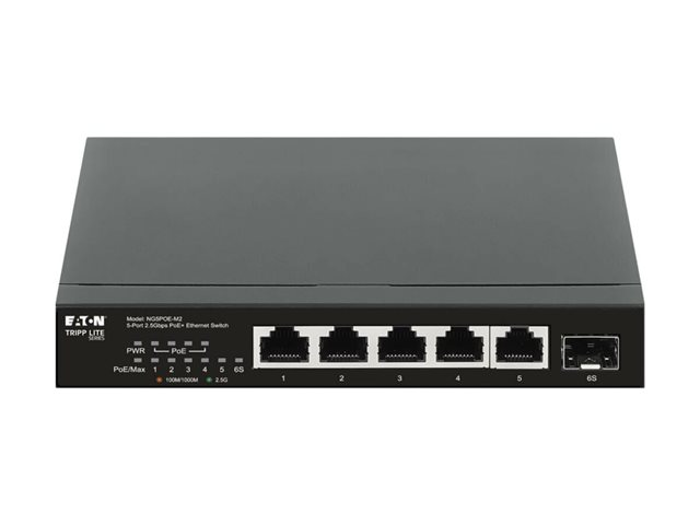 Eaton Tripp Lite series Desktop Gigabit Ethernet Unmanaged Switch PoE+ Pass-Through 5-Port 2.5 Gbps 70W Metal