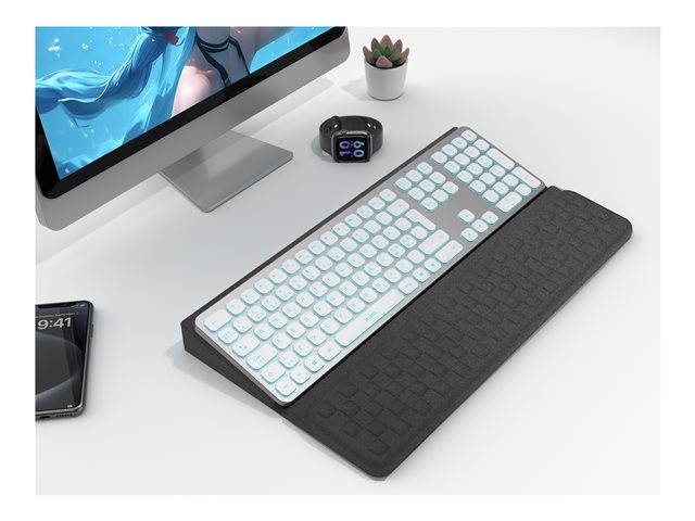 Produktbeskrivning DELTACO wrist pad with integrated keyboard stand - ergonomic Produkttyp Wrist pad with integrated keyboard stand Produktmaterial Lycra tyg, minnesskum, gel, polyuretan (PU) Dimensioner (BxDxH) 45 cm x 4.3 cm x 25.7 cm Vikt 880 g Färg Svart Tillverkarens garanti 5 års garanti - Nedladdningsbara filer