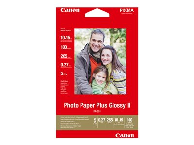 Produktbeskrivning Canon Photo Paper Plus Glossy II PP-201 - fotopapper - högblank - 100 ark - 102 x 152 mm - 265 g/m²