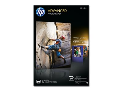 Produktbeskrivning HP Advanced Glossy Photo Paper - fotopapper - blank - 60 ark - 100 x 150 mm - 250 g/m² Typ av produkt Fotopapper Ytbeläggning Blank Mediastorlek 100 x 150 mm Medievikt 250 g/m² Tjocklek på medier 10,5 mil Ljusstyrka på medier 94 Medföljande antal 60 ark Kompatibel med Deskjet 2050 J510, 2132, Ink Advantage 52XX; ENVY 45XX, 50XX, 55XX, 56XX, 76XX, Photo 62XX, Photo 7130, Photo 7858; Ink Tank 319; Ink Tank Wireless 410; Officejet 52XX, 6000 E609, 7500, 76XX; PageWide MFP 377; PageWide Pro 452; Photosmart 5525, B110, Wireless B110; Smart Tank Plus 55X, 571, 655 - Nedladdningsbara filer