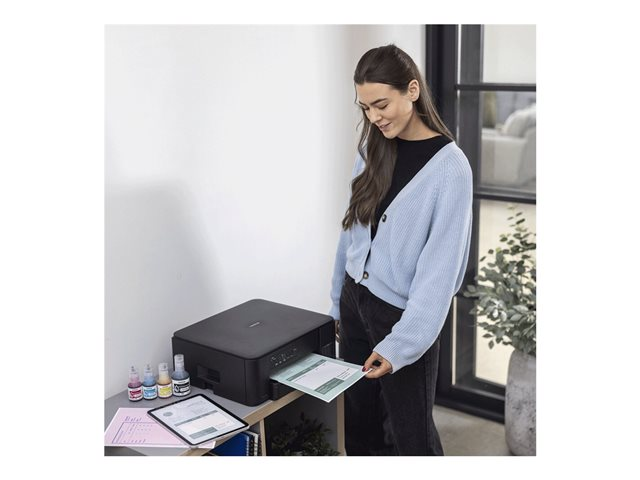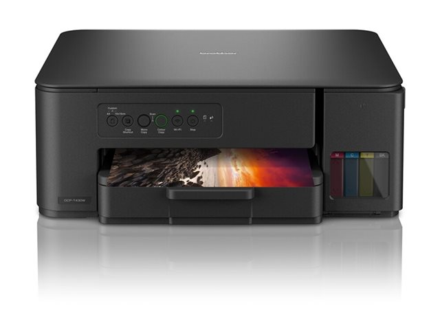 Produktbeskrivning Brother DCP-T430W - multifunktionsskrivare - färg Typ av enhet Multifunktionsskrivare Utskriftsteknik Bläckstråle (färg) Bläckstråleteknik 4-färgs Återfyllningsbar tank Ja Bläckpåfyllningssystem Ink Tank System (ITS) Max kopieringsupplösning Upp till 1200 x 1800 dpi (mono)/upp till 1200 x 1800 dpi (färg) Max utskriftshastighet Upp till 16 sidor/minut (mono)/upp till 9 sidor/minut (färg) Max utskriftsupplösning Upp till 1200 x 6000 dpi (mono)/upp till 1200 x 6000 dpi (färg) Skanning 1200 x 2400 dpi Originaltyp Ark Mediastorlek Legal (216 x 356 mm), A4 (210 x 297 mm) (max) Mediatyp Kuvert, vanligt papper, glansigt papper, returpapper, fotopapper Standard mediekapacitet 150 ark Kapacitet hos förbikopplande dokumentmatare 1 blad Utmatningsfackens kapacitet 50 ark Anslutningsmöjlighet Ja Gränssnitt USB 2.0, Wi-Fi(n) AirPrint-aktiverad Ja Strömtillförsel AC 230 V Dimensioner (BxDxH) 39 cm x 34.3 cm x 14.85 cm Vikt 6.3 kg - Tillbehör