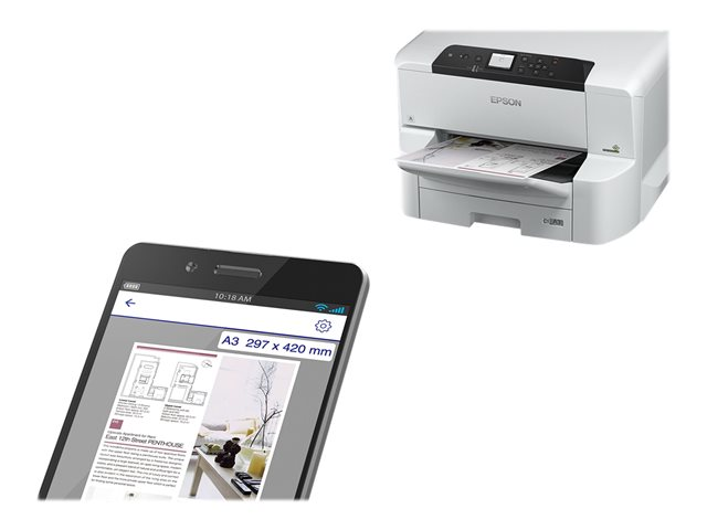 Upp till 11 spm - färgduplex (ISO/IEC 24734) - A3 (297 x 420 mm)Maxupplösning (svart/vit) 4800 x 1200 dpi Maxupplösning (färg) 4800 x 1200 dpi Maximal upplösningsklass (svart-vitt) 4800 x 1200 dpi Maximal upplösningsklass (färg) 4800 x 1200 dpi Automatisk duplex Ja Gränssnitt Gigabit LAN, NFC, USB 3.0, USB 2.0-värd, Wi-Fi(ac) AirPrint-aktiverad Ja Språksimulering PCL 5C, PostScript 3, PCL 6, EPSON ESC/P Raster, PDF 1.7 Mediatyp Kuvert, vanligt papper, returpapper, glansigt papper Total mediekapacitet 835 ark Mediehantering Inmatningsfack för 250 ark, inmatningsfack för 500 ark, flerfunktionsfack för 85 ark Driftscykel per månad (max) 75000 sidor Rekommenderad månatlig volym 500 - 5 000 sidor Nätverk Printserver Systemkrav Linux, Microsoft Windows XP Professional x64 Edition SP2, Microsoft Windows Server 2008 R2, Microsoft Windows XP SP3, Microsoft Windows Vista (32/64 bits), Microsoft Windows 7 (32/64 bits), Microsoft Windows Server 2008 (32/64-bits), Microsoft Windows Server 2003 (32/64-bits), Apple MacOS X 10.6.8 eller senare, Microsoft Windows Server 2003 R2 x64 Edition, Windows 8 (32/64 bitars), Microsoft Windows Server 2012 x64 Edition, Android 4.0 eller senare, Windows 8.1 (32/64 bitars), Microsoft Windows Server 2012 R2, Windows 10, Microsoft Windows Server 2016 Tillverkarens garanti 1 års garanti - Tillbehör
