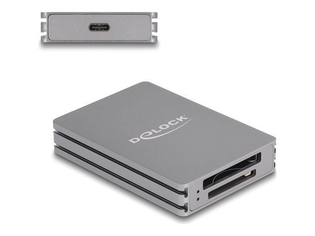 Produktbeskrivning Delock kortläsare - USB-C Produkttyp Kortläsare - extern Minneskort som stöds CFexpress 2.0 Card Type A Värdgränssnitt USB-C Färg Grå Egenskaper LED-indikator, startbar, upp till 10 Gbps datatransfer, NVMe-stöd Tillverkarens garanti 3 års garanti - Nedladdningsbara filer