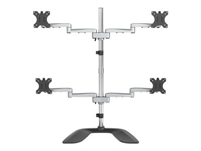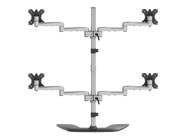 Ergonomisk VESA arm för 4 skärmar (2x2) upp till 32 tum - Fristående ledat universellt stolpfäste - Höjdjusterbar/luta/vrid/rotera - Silver ställ - justerbar arm - för 4 monitorer