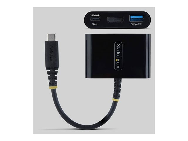 Produktbeskrivning StarTech.com - dockningsstation - USB-C - HDMI Typ av produkt Dockningsstation Dockningsgränssnitt USB-C Videogränssnitt HDMI Dimensioner (BxDxH) 4 cm x 5.9 cm x 1.4 cm Vikt 34 g Färg Svart Strömtillförsel USB 10 Watt 140 Watt Effekt (DC 5 V) Tillverkarens garanti 3 års garanti - Tillbehör