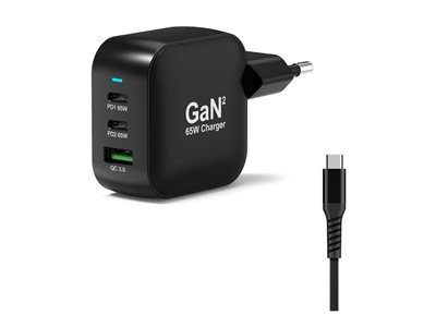 GaN II, with 2 m cable - 2 x USB-C, USB typ A - 65 Watt