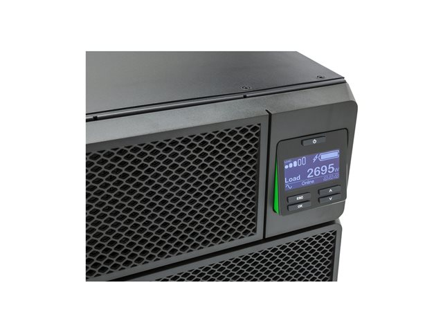 Produktbeskrivning APC Smart-UPS On-Line 10000VA RM - UPS - 10 kW - 10000 VA Typ av enhet UPS - kan monteras i rack Stativstorlek 6U Vikt 111.58 kg Ingångskablage 1-fas Inspänning AC 208/240 V Utspänning AC 208/230 V ± 2% Effektkapacitet 10 kW / 10000 VA Inmatningsanslutningar 1 x fast 3-trådig (2PH + G) Utdatakontakter 4 x ström NEMA L6-20R